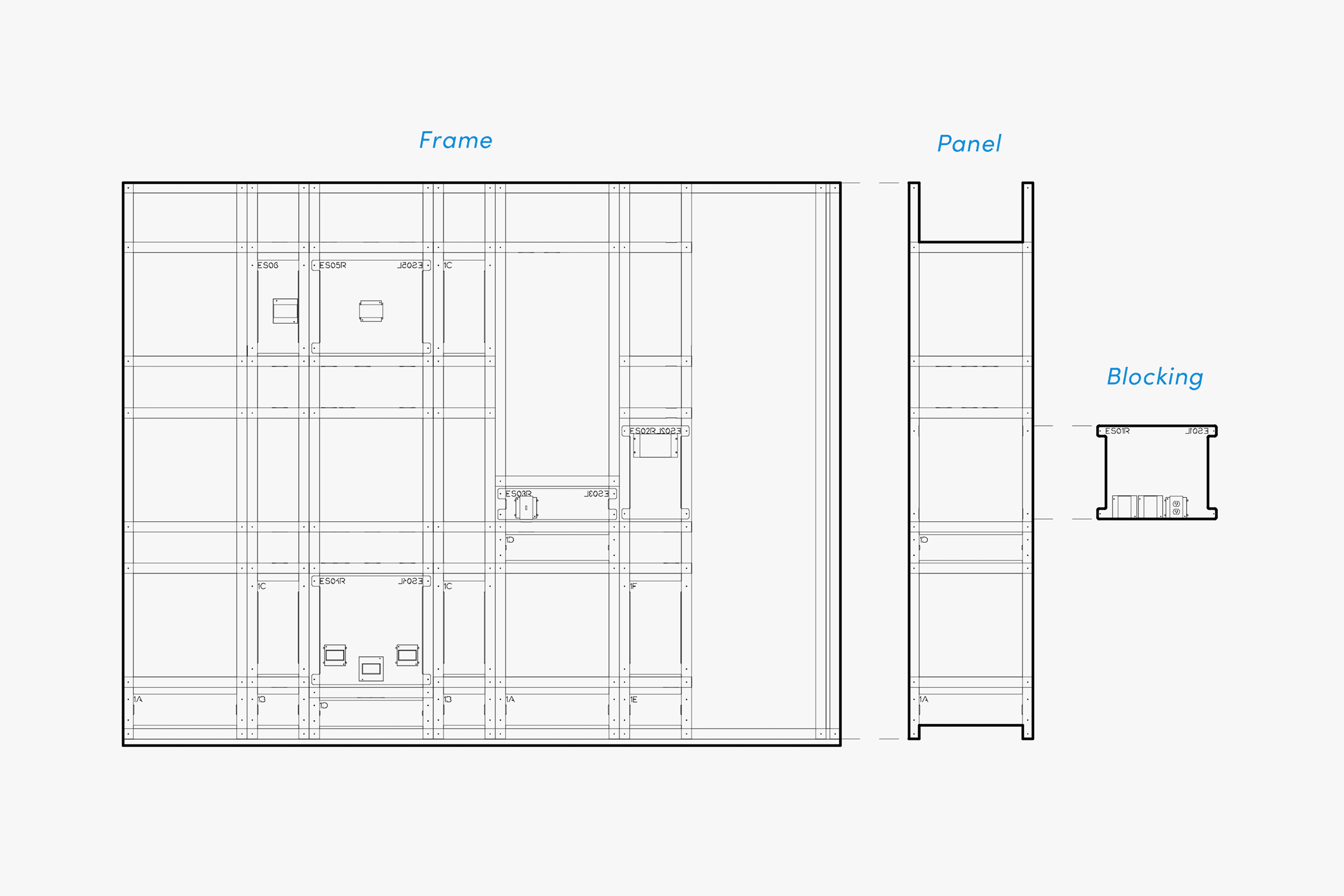 Solution: Built on a standard 2×2 grid panel system, customized only where necessary. By using existing frameworks and repeating blocking panels: